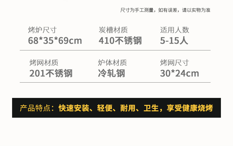 家用户外烧烤炉无烟烤炉木炭烤肉烧烤架子烤羊腿神器烧烤用品工具 $0.63 – $35.57 在库 联系我们 发送邮箱 工厂直供 源头工厂直供,确保真实可靠的供应链 严格质检 多重质检把控,确保产品品质稳定可靠。 跨境认证 通过 CE/FDA/RoHS 等认证,符合全球市场标准。 烤架/盘规格 选择一个选项CZ095【中国红】CZ095【中国红】(送收纳包+3斤碳+酒精块)CZ095【中国红】(送收纳包+3斤碳+酒精块+烤鱼夹+烧烤八件套)CZ095【中国红】(送收纳包+烤鸡架)CZ095【磨砂黑】CZ095【磨砂黑】(送收纳包+3斤碳+酒精块)CZ095【磨砂黑】(送收纳包+3斤碳+酒精块+烤鱼夹+烧烤八件套)CZ095【磨砂黑】(送收纳包+烤鸡架)小煎盘木柄不锈钢烤针12根(配件单拍不发)烤鸡架(适用于95烤炉)烧烤八件套直条碳3斤+酒精块直条碳3斤+酒精块+炭夹竹炭10斤+酒精块+炭夹长33.5扁针50根(配件单拍不发)清除 家用户外烧烤炉无烟烤炉木炭烤肉烧烤架子烤羊腿神器烧烤用品工具量 加入购物车 库存单位: A_722223550408_74338489 分类: 浙江橡果休闲用品 评论 有没有评论。 是第一个审查"家用户外烧烤炉无烟烤炉木炭烤肉烧烤架子烤羊腿神器烧烤用品工具" 取消回复您的邮箱地址不会被公开。 必填项已用 * 标注您的评价 * 速度... 完美的 很好的 平均 没那么糟 很可怜的 你的审查 *名称 * 电子邮件 * 在此浏览器中保存我的显示名称、邮箱地址和网站地址,以便下次评论时使用。 描述 其他信息 描述 其他信息 烤架/盘规格 CZ095【中国红】, CZ095【中国红】(送收纳包+3斤碳+酒精块), CZ095【中国红】(送收纳包+3斤碳+酒精块+烤鱼夹+烧烤八件套), CZ095【中国红】(送收纳包+烤鸡架), CZ095【磨砂黑】, CZ095【磨砂黑】(送收纳包+3斤碳+酒精块), CZ095【磨砂黑】(送收纳包+3斤碳+酒精块+烤鱼夹+烧烤八件套), CZ095【磨砂黑】(送收纳包+烤鸡架), 小煎盘, 木柄不锈钢烤针12根(配件单拍不发), 烤鸡架(适用于95烤炉), 烧烤八件套, 直条碳3斤+酒精块, 直条碳3斤+酒精块+炭夹, 竹炭10斤+酒精块+炭夹, 长33.5扁针50根(配件单拍不发) 相关产品 比较户外烧烤炉室内折叠家用便携式烤肉炉木炭家庭庭院露营料台烧烤架$0.42 – $9.04选择选项 比较多功能户外焚火台便携取暖柴火炉露营烧烤架篝火炉烽火台用品装备$17.86 – $41.15选择选项 比较原始人围炉煮茶冬季烤火炉套装烧烤全套家用新款烤肉炉户外炭火炉$0.42 – $9.49选择选项 比较加厚户外烧烤炉家用不锈钢烧烤架野外木炭工具碳烤肉炉烤鱼炉子$15.35 – $28.60选择选项 比较木柄烧烤签子不锈钢羊肉串烤肉工具烤串竹签用品铁签子扁配件针$0.98选择选项 比较户外露营火舞焚火台 不锈钢石英防爆玻璃柴火炉 便携式折叠篝火架$11.16 – $93.47选择选项