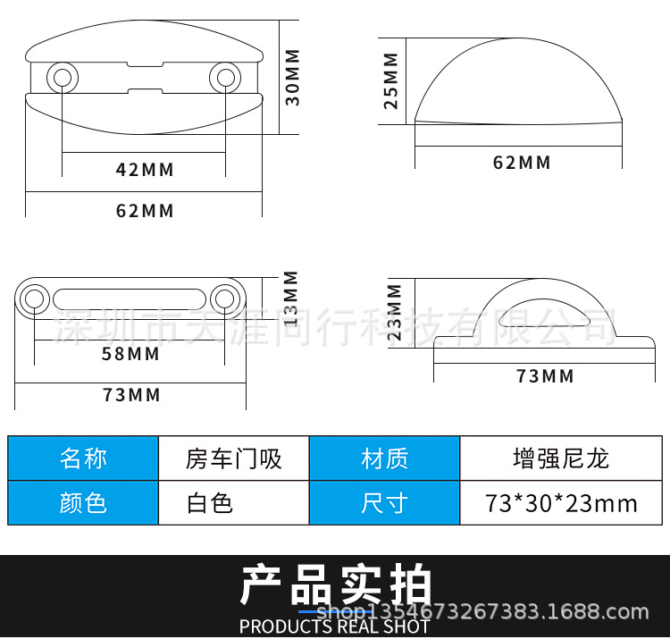 房车客车商务车改装配件舱门吸强力防老化尼龙门吸限位器 $0.49 现在有货 联系我们 发送邮箱 工厂直供 源头工厂直供,确保真实可靠的供应链 严格质检 多重质检把控,确保产品品质稳定可靠。 跨境认证 通过 CE/FDA/RoHS 等认证,符合全球市场标准。 规格 Choose an option白色 房车门吸 010289黑色 房车门吸 011215Clear 房车客车商务车改装配件舱门吸强力防老化尼龙门吸限位器量 Add to cart 库存单位: A_597850261629_95007111 分类: 浙江天涯同行科技有限公司 评论 有没有评论。 是第一个审查"房车客车商务车改装配件舱门吸强力防老化尼龙门吸限位器" 取消回复您的邮箱地址不会被公开。 必填项已用 * 标注您的评价 * 速度... 完美的 很好的 平均 没那么糟 很可怜的 你的审查 *名称 * 电子邮件 * 在此浏览器中保存我的显示名称、邮箱地址和网站地址,以便下次评论时使用。 Description Additional information Description Additional information 规格 白色 房车门吸 010289, 黑色 房车门吸 011215 相关产品 比较房车改装配件 房车旅居车 卫生间淋浴 伸缩省水花洒 抽拉式龙头$3.49 – $20.65Select options 比较空调出风口 房车汽车改装内饰圆形耐脏出风排风口配件$2.51 – $6.28Select options 比较汽车双电池隔离保护控制器 房车改装双电瓶智能隔离器12V 24V$16.74 – $18.14Select options 比较房车改装重汽汕德卡踏步四层手动折叠踏步拖挂带灯折叠电动踏板$320.86Select options 比较收纳盒 020090190 外贸350×295置物盒$5.30Select options 比较房车改装配件 不锈钢房车改装杯托 烟灰缸 钢杯 房车改装杯座$0.11 – $1.40Select options