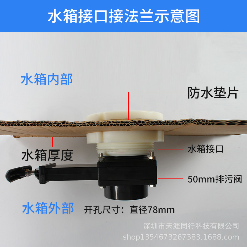房车改装配件 房车水箱排污接口 水箱法兰 排污阀 塑料不锈钢水箱