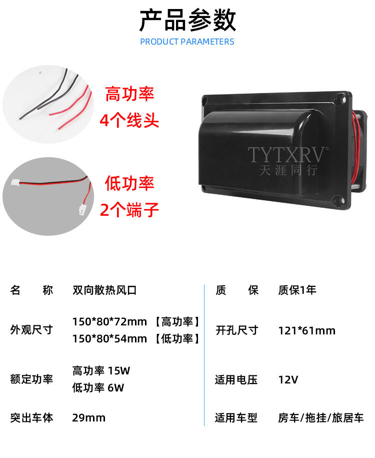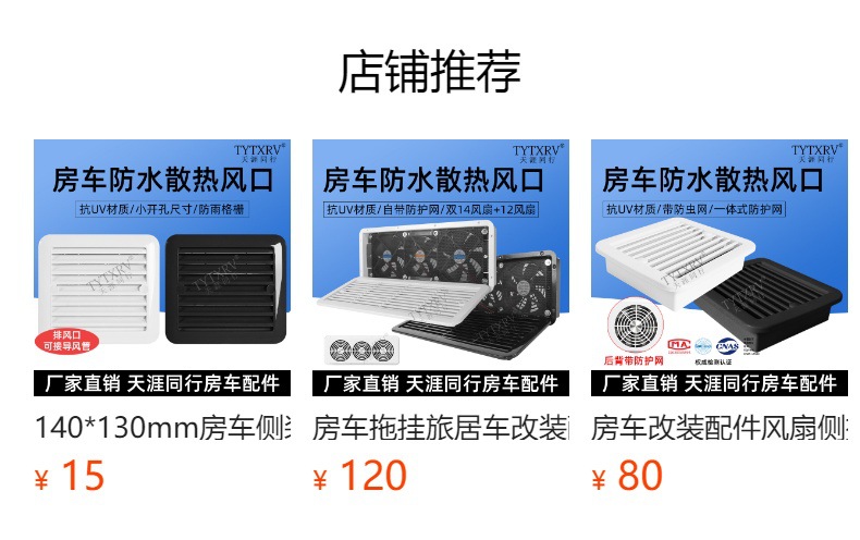 房车改装配件12V车载侧装排风扇换气扇油烟机抽风口排风口通风口