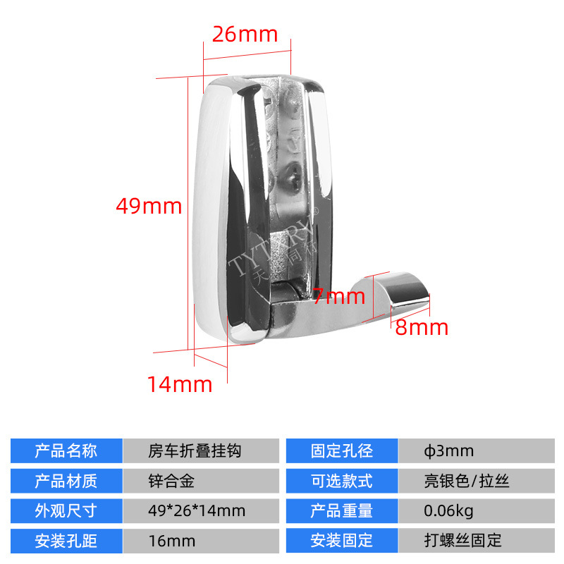 房车配件 浴室毛巾挂钩 锌合金拉丝隐藏式衣帽小挂钩