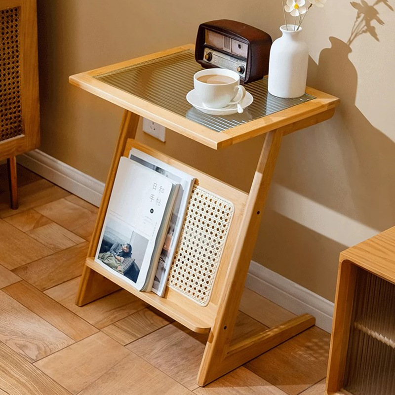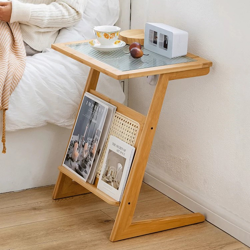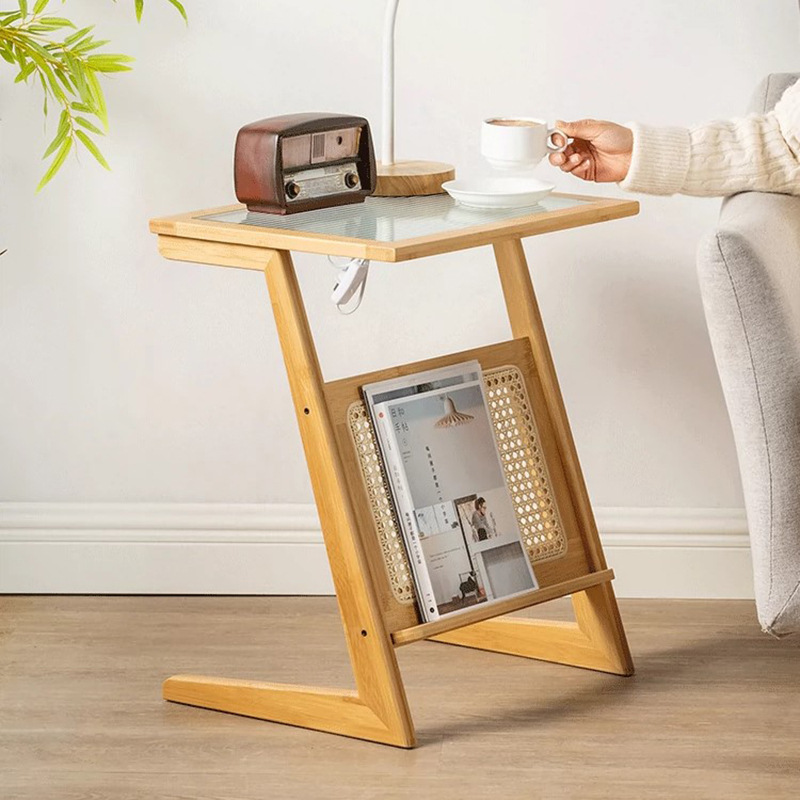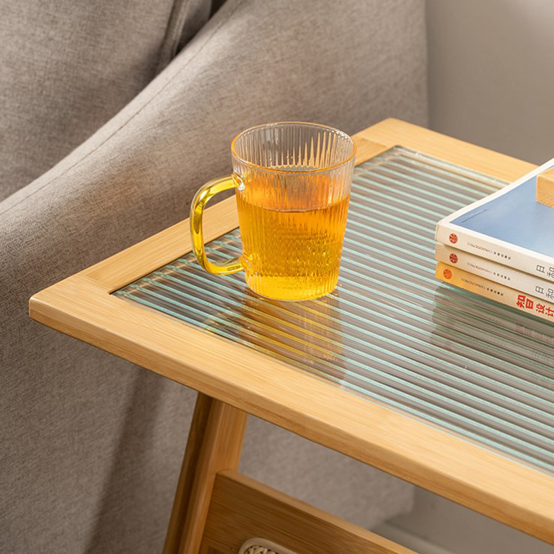 曲天下楠竹沙发边几客厅小茶几卧室床头置物架阳台藤编玻璃边桌子