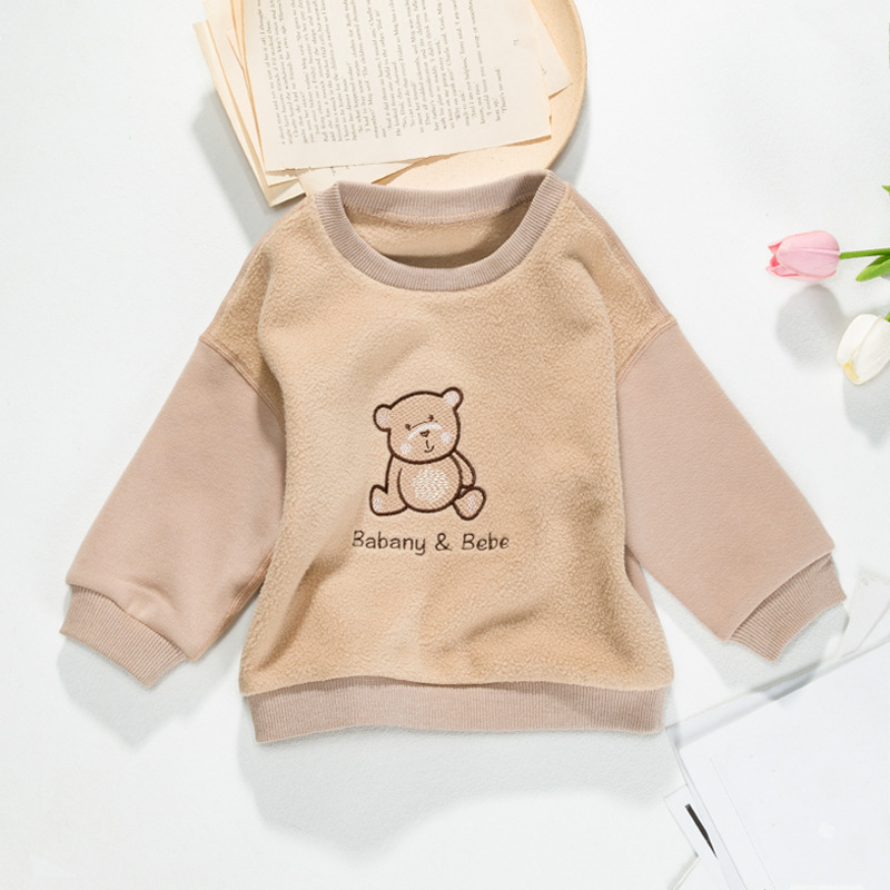 男童装卡通小熊卫衣秋冬洋气儿童加绒加厚颗粒绒宝宝保暖休闲上衣