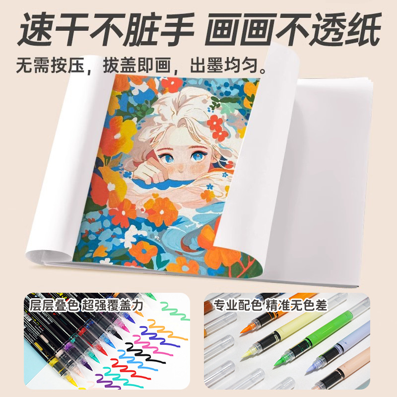 直液式软头丙烯马克笔学生专用80色美术生不透色可叠色儿童绘画笔