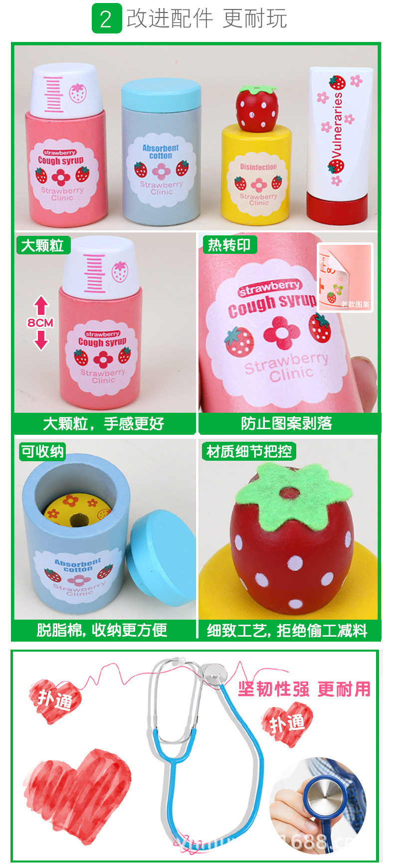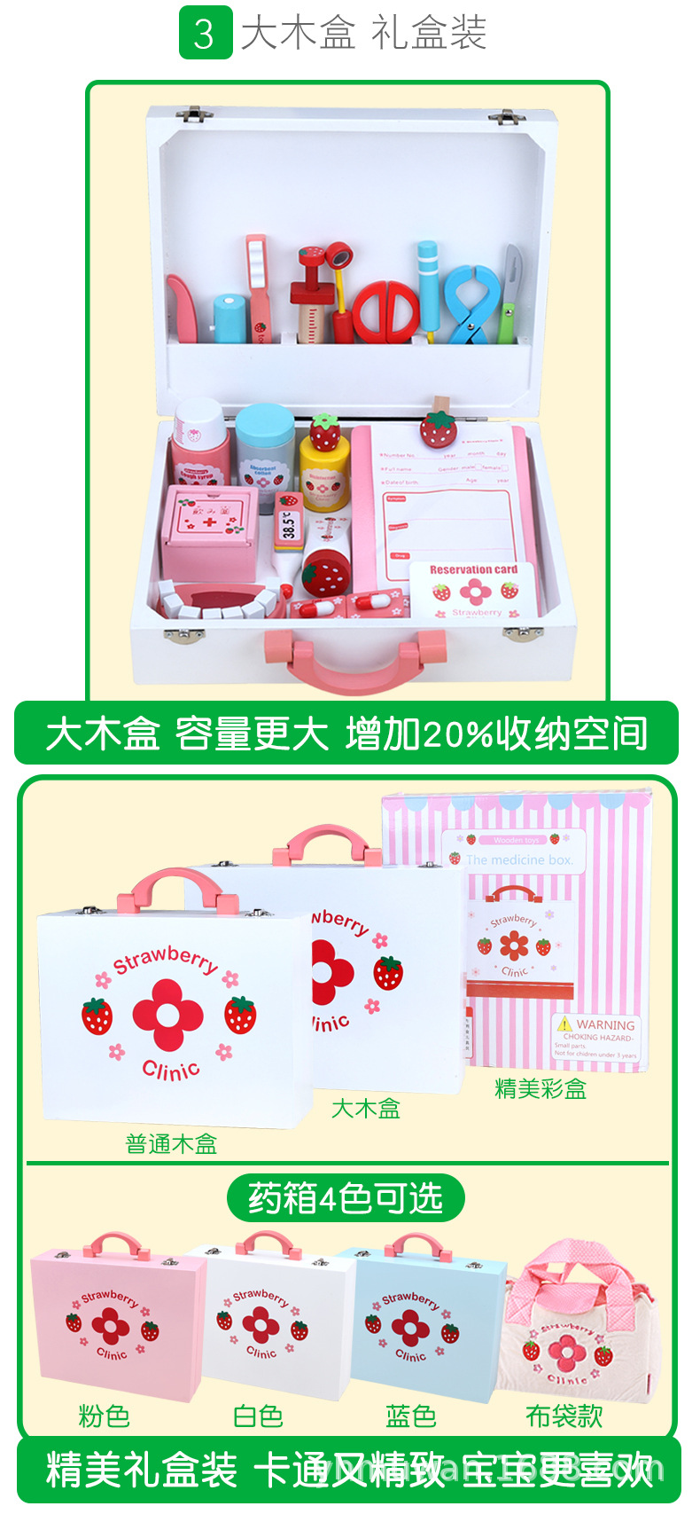 草莓医药箱 小医生护士医疗箱玩具 过家家玩具仿真小医生 $9.49 现在有货 联系我们 发送邮箱 工厂直供 源头工厂直供,确保真实可靠的供应链 严格质检 多重质检把控,确保产品品质稳定可靠。 跨境认证 通过 CE/FDA/RoHS 等认证,符合全球市场标准。 颜色 Choose an option贝奇药箱A套餐Clear 草莓医药箱 小医生护士医疗箱玩具 过家家玩具仿真小医生量 Add to cart 库存单位: A_839815317570_94248706 分类: 浙江宏腾商务展览有限公司 评论 有没有评论。 是第一个审查"草莓医药箱 小医生护士医疗箱玩具 过家家玩具仿真小医生" 取消回复您的邮箱地址不会被公开。 必填项已用 * 标注您的评价 * 速度... 完美的 很好的 平均 没那么糟 很可怜的 你的审查 *名称 * 电子邮件 * 在此浏览器中保存我的显示名称、邮箱地址和网站地址,以便下次评论时使用。 Description Additional information Description Additional information 颜色 贝奇药箱A套餐 相关产品 比较木玩世家肥啾木雕小鸟纯手工实木桌面摆件车载装饰精致木雕批发$4.10Select options 比较宝宝早教拔萝卜颜色形状启蒙认知手眼协调训练图形配对益智积木车$4.46Select options 比较儿童木制多层动物拼图拼板 早教益智卡通动物手抓拼板玩具$1.81Select options 比较儿童卡通动物贴纸纹身贴无毒防水男女小孩幼儿贴画套装脸贴批发$0.00Add to cart 比较幼儿童动物鸟树套柱拼装积木幼儿园益智早教形状认知木制玩具批发$2.65Select options 比较一件代发蒙氏早教颜色配对玩具榉木迷宫轨道板四色八色认知游戏幼$2.23 – $3.07Select options