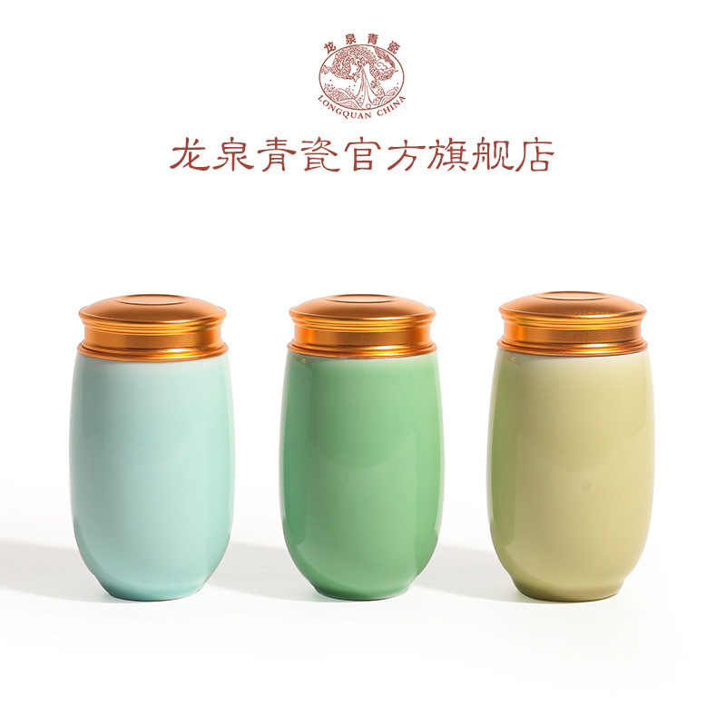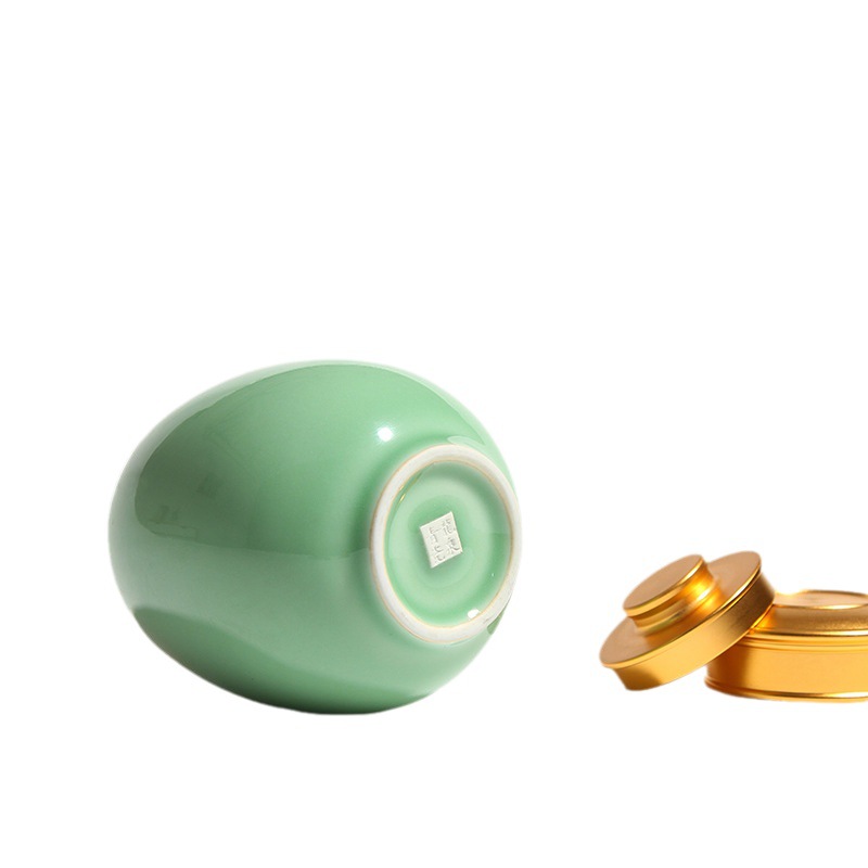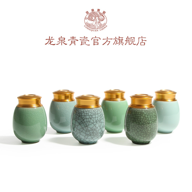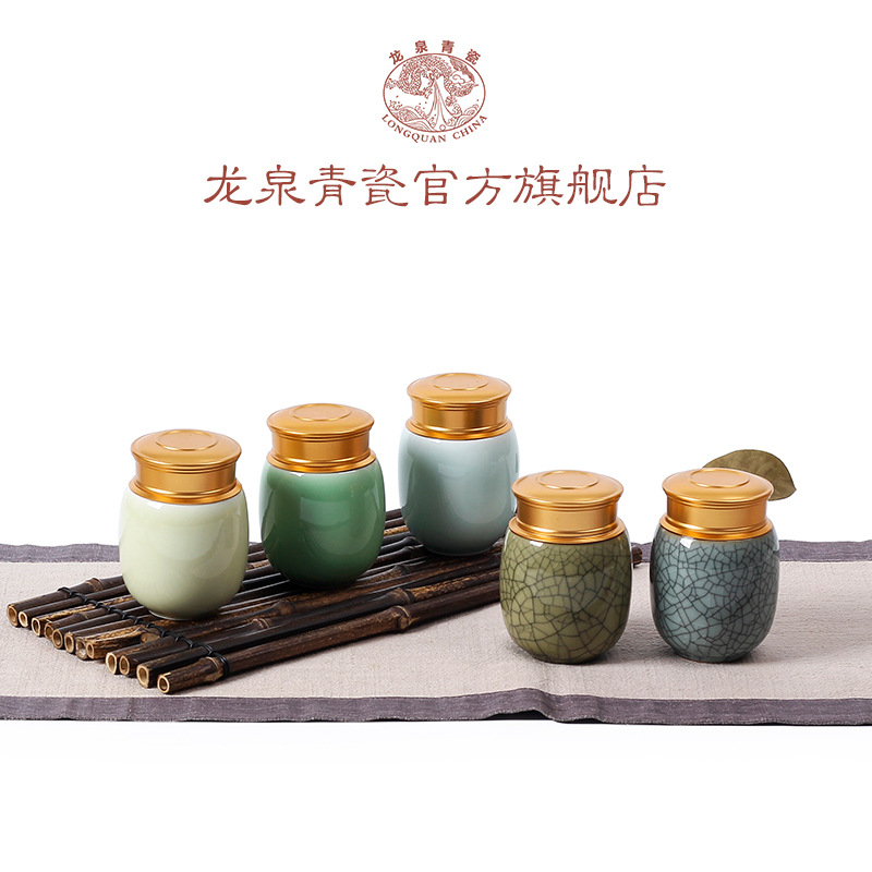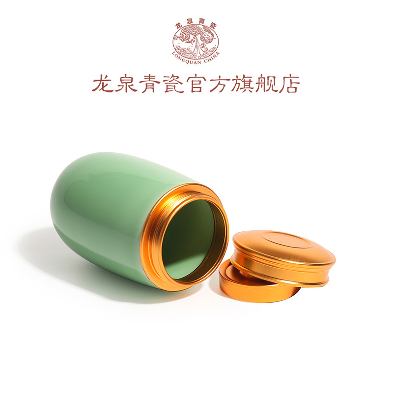 龙泉青瓷小号便携旅行茶叶罐陶瓷密封罐储物罐大号茶仓雕刻logo