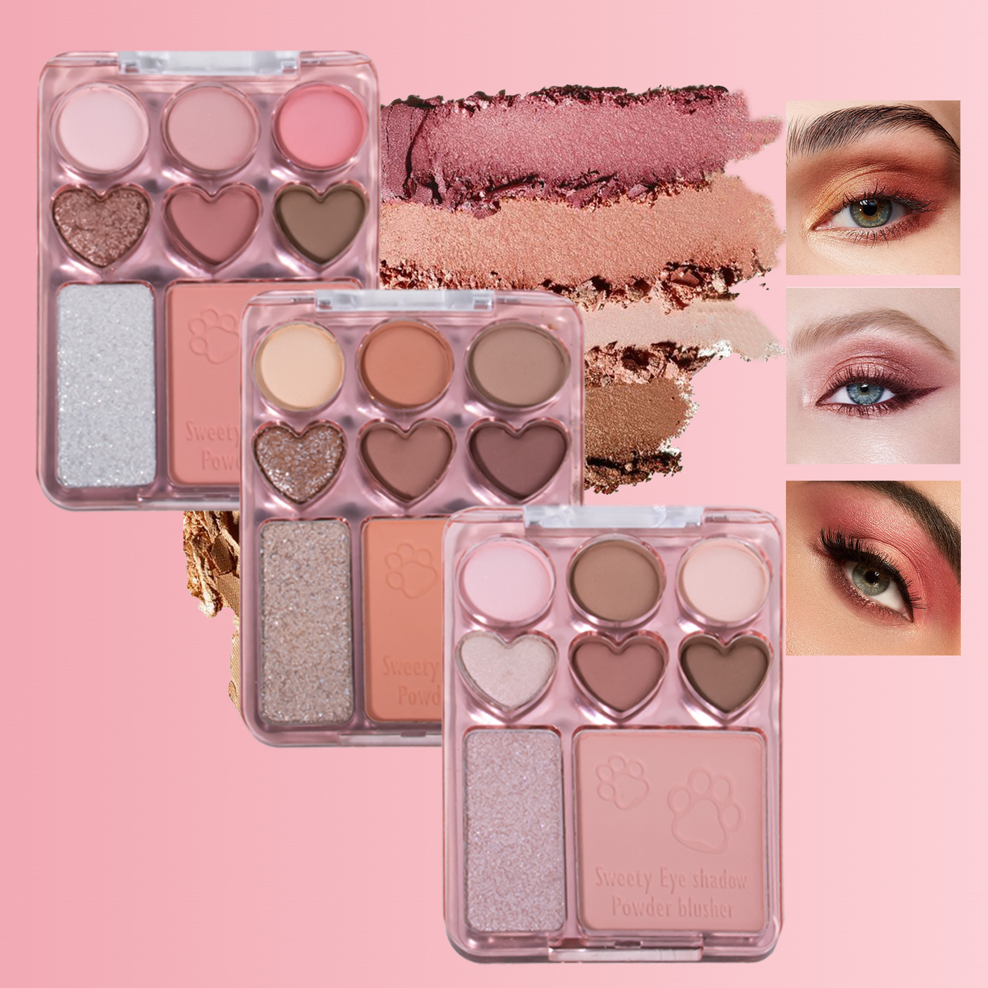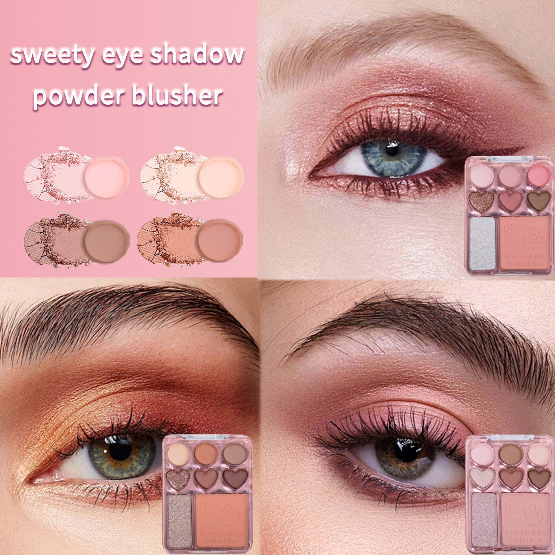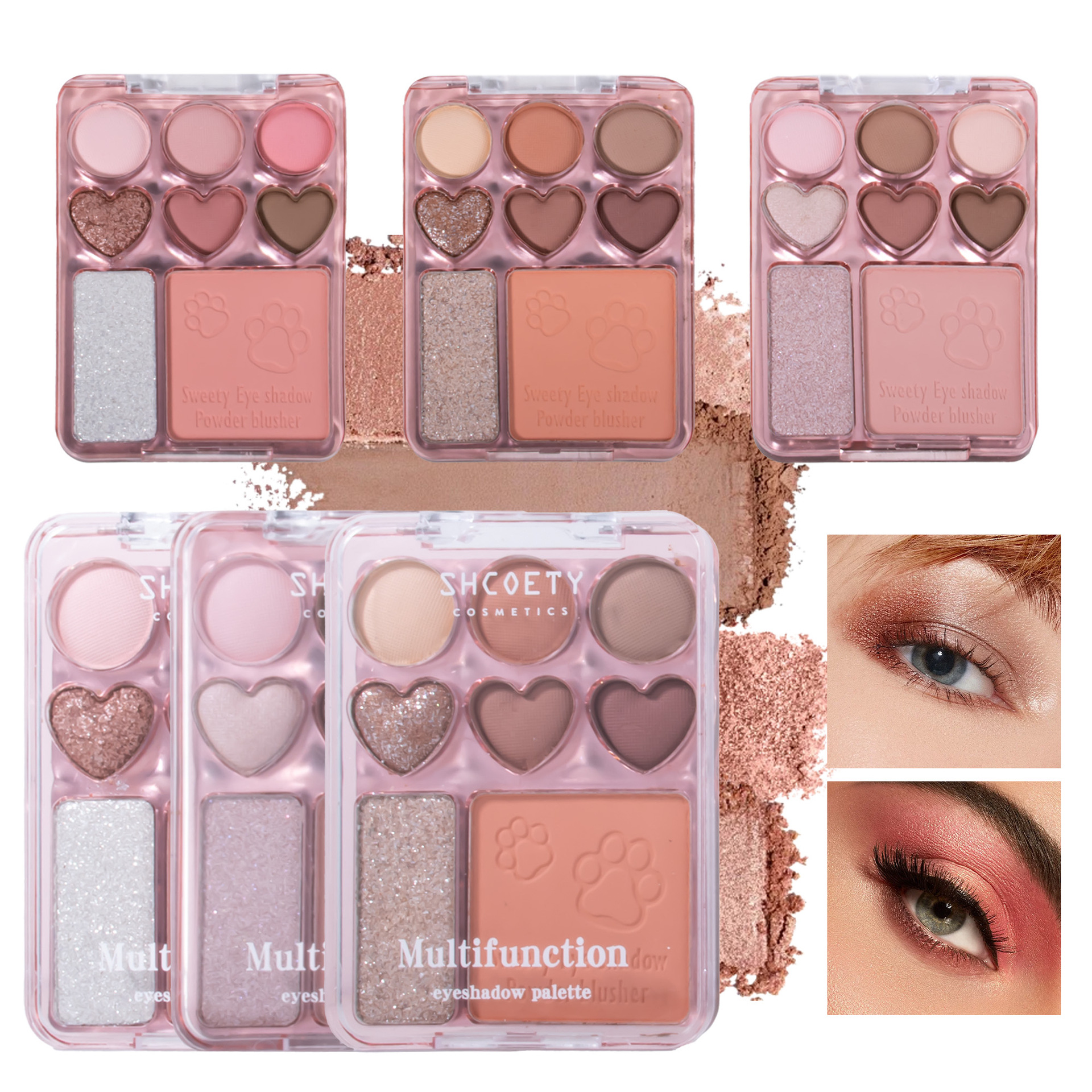 SHCOETY8色爱心眼影盘腮红高光一体自然立体防水持久细闪眼影跨境